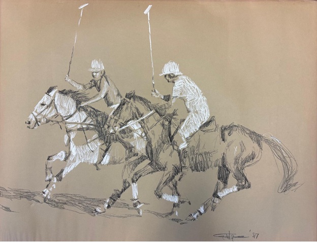 Year 1987 Polo Horses Pastel and Charcoal on Paper 24 x 30 Inch