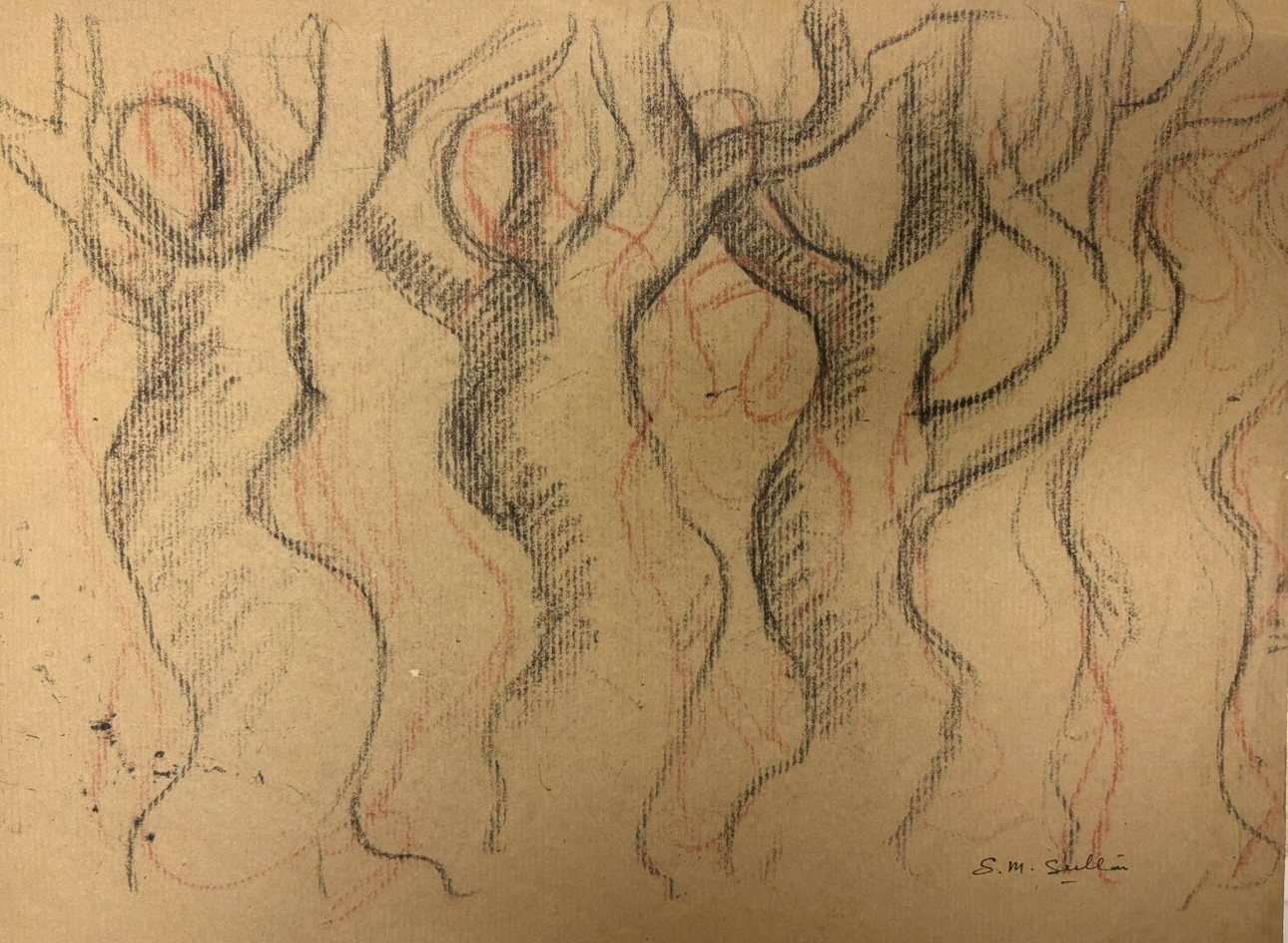S M Sultan 1960’s, pastel on paper 10’x 12 in.